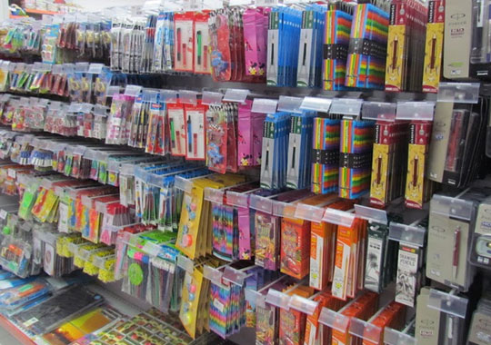 Perfect for Stationary stores — our shelving systems accommodate notebooks, files, pens, and art materials while keeping your display neat and engaging.